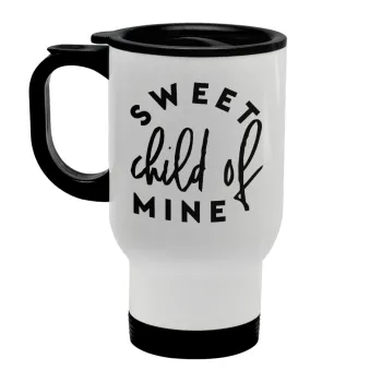 Sweet child of mine!, Κούπα ταξιδιού ανοξείδωτη με καπάκι, διπλού τοιχώματος (θερμό) λευκή 450ml