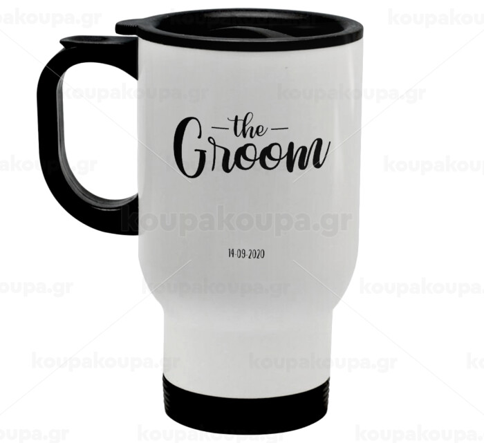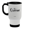 Groom & Bride (Groom), Κούπα ταξιδιού ανοξείδωτη με καπάκι, διπλού τοιχώματος (θερμό) λευκή 450ml