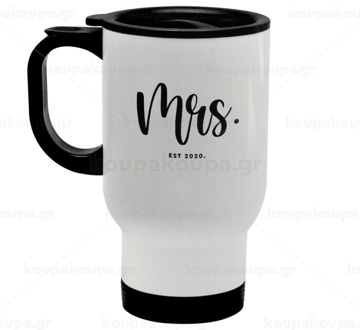 Mr & Mrs (Mrs), Κούπα ταξιδιού ανοξείδωτη με καπάκι, διπλού τοιχώματος (θερμό) λευκή 450ml