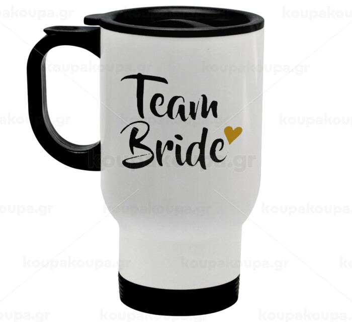 Team Bride, Κούπα ταξιδιού ανοξείδωτη με καπάκι, διπλού τοιχώματος (θερμό) λευκή 450ml