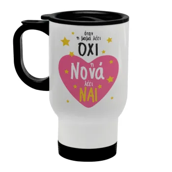 Η νονά λέει ναι!!!, Κούπα ταξιδιού ανοξείδωτη με καπάκι, διπλού τοιχώματος (θερμό) λευκή 450ml