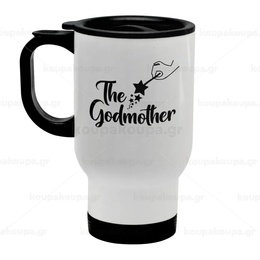 Fairy God Mother, Κούπα ταξιδιού ανοξείδωτη με καπάκι, διπλού τοιχώματος (θερμό) λευκή 450ml