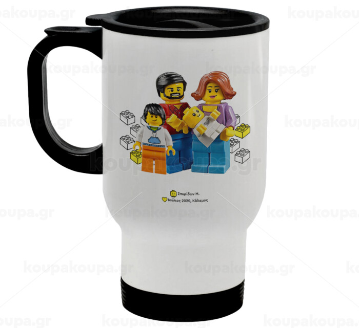 Τύπου Lego family, Κούπα ταξιδιού ανοξείδωτη με καπάκι, διπλού τοιχώματος (θερμό) λευκή 450ml