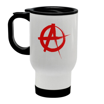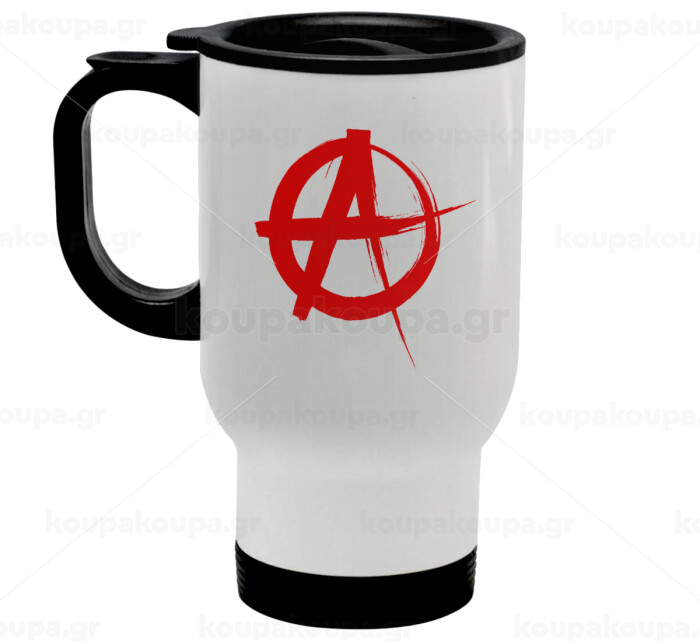 Anarchy, Κούπα ταξιδιού ανοξείδωτη με καπάκι, διπλού τοιχώματος (θερμό) λευκή 450ml