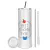 Best teacher ever, Κούπα ταξιδιού ανοξείδωτη με καπάκι, διπλού τοιχώματος (θερμό) λευκή 450ml