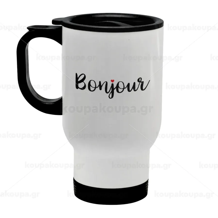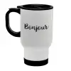 Bonjour, Κούπα ταξιδιού ανοξείδωτη με καπάκι, διπλού τοιχώματος (θερμό) λευκή 450ml