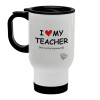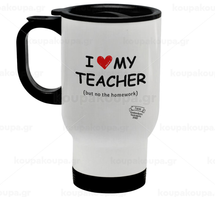 i love my teacher but no the homework, Κούπα ταξιδιού ανοξείδωτη με καπάκι, διπλού τοιχώματος (θερμό) λευκή 450ml