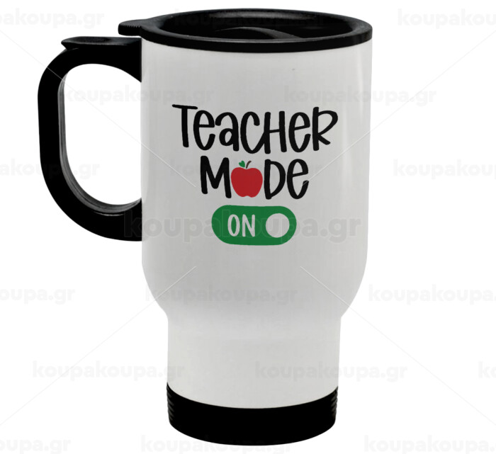 Teacher mode ON, Κούπα ταξιδιού ανοξείδωτη με καπάκι, διπλού τοιχώματος (θερμό) λευκή 450ml