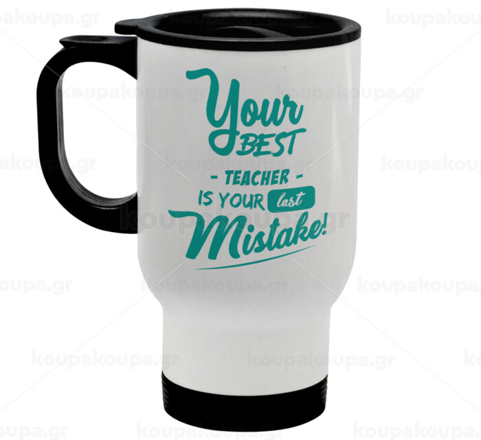 Your best teacher is your last mistake, Κούπα ταξιδιού ανοξείδωτη με καπάκι, διπλού τοιχώματος (θερμό) λευκή 450ml