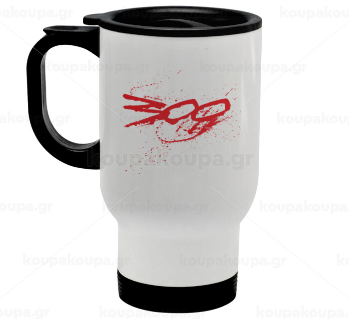 Οι 300 της Σπάρτης, Κούπα ταξιδιού ανοξείδωτη με καπάκι, διπλού τοιχώματος (θερμό) λευκή 450ml