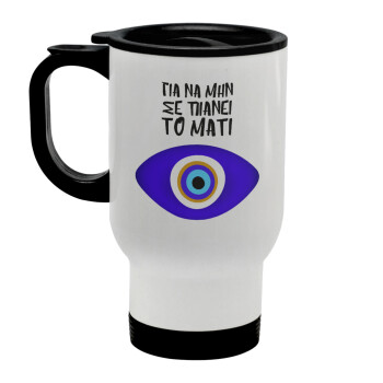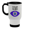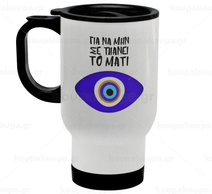 Για να μην σε πιάνει το μάτι, Κούπα ταξιδιού ανοξείδωτη με καπάκι, διπλού τοιχώματος (θερμό) λευκή 450ml