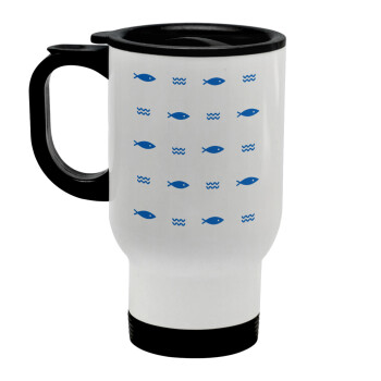 Ψαράκια, Κούπα ταξιδιού ανοξείδωτη με καπάκι, διπλού τοιχώματος (θερμό) λευκή 450ml
