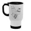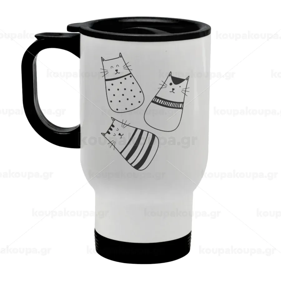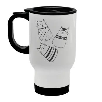 Cute cats, Κούπα ταξιδιού ανοξείδωτη με καπάκι, διπλού τοιχώματος (θερμό) λευκή 450ml