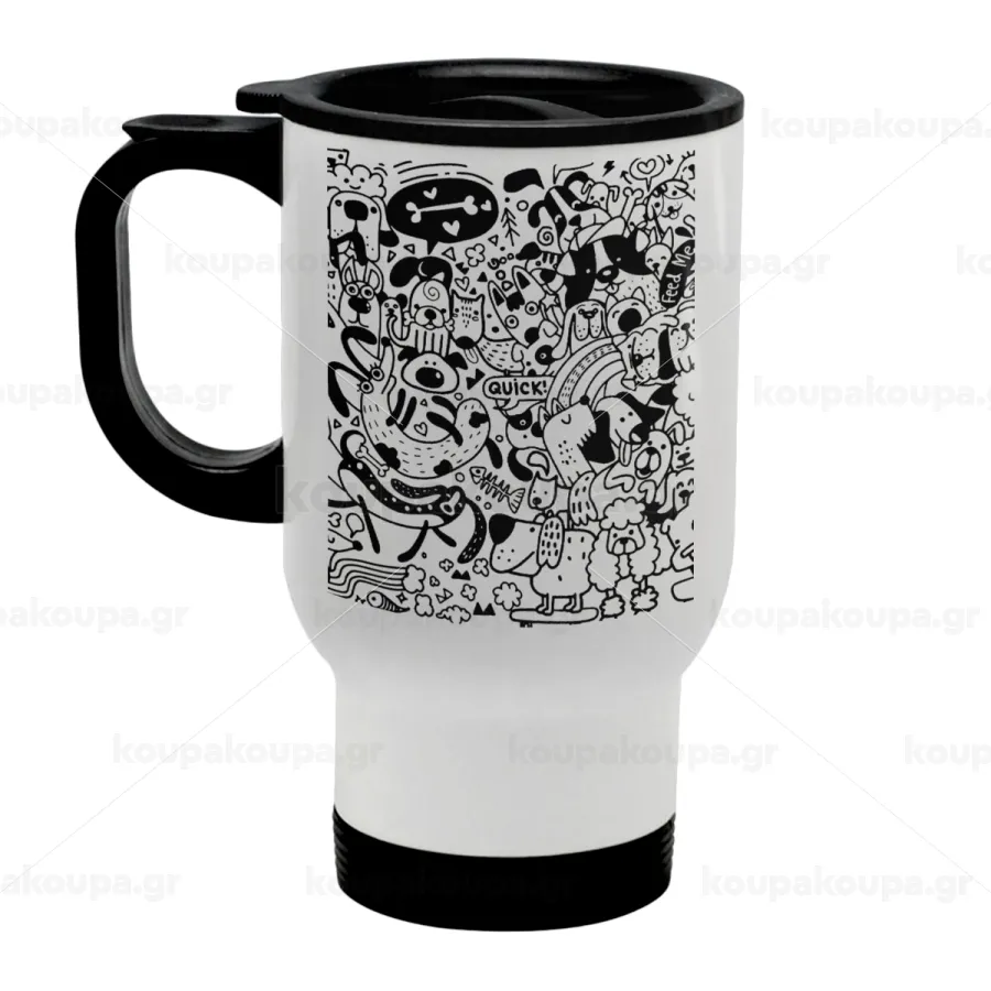 Σκυλάκια, Κούπα ταξιδιού ανοξείδωτη με καπάκι, διπλού τοιχώματος (θερμό) λευκή 450ml