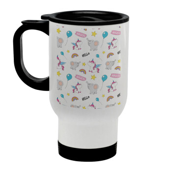 Happy Clouds Doodle, Κούπα ταξιδιού ανοξείδωτη με καπάκι, διπλού τοιχώματος (θερμό) λευκή 450ml