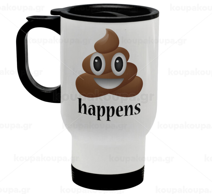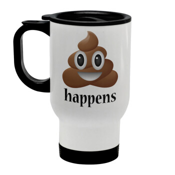 Shit Happens, Κούπα ταξιδιού ανοξείδωτη με καπάκι, διπλού τοιχώματος (θερμό) λευκή 450ml