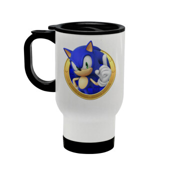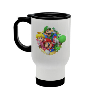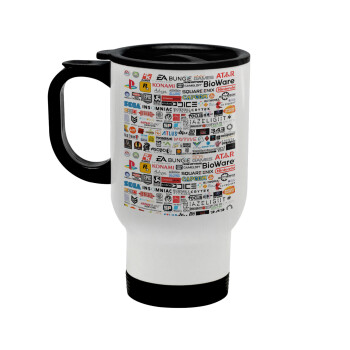 Κούπα ταξιδιού ανοξείδωτη με καπάκι, διπλού τοιχώματος (θερμό) λευκή 450ml με θέμα Gaming