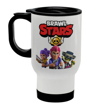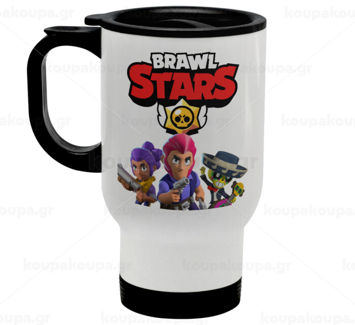 Brawl Stars Blue, Κούπα ταξιδιού ανοξείδωτη με καπάκι, διπλού τοιχώματος (θερμό) λευκή 450ml