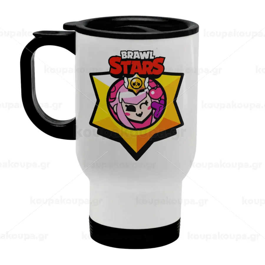 Brawl Stars Melodie, Κούπα ταξιδιού ανοξείδωτη με καπάκι, διπλού τοιχώματος (θερμό) λευκή 450ml