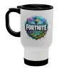 Fortnite land, Κούπα ταξιδιού ανοξείδωτη με καπάκι, διπλού τοιχώματος (θερμό) λευκή 450ml