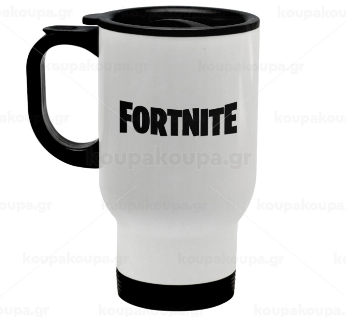 Fortnite landscape, Κούπα ταξιδιού ανοξείδωτη με καπάκι, διπλού τοιχώματος (θερμό) λευκή 450ml