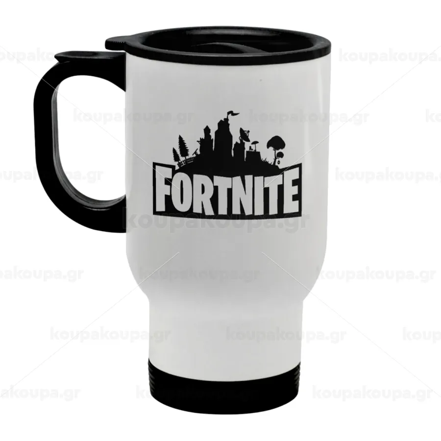 Fortnite, Κούπα ταξιδιού ανοξείδωτη με καπάκι, διπλού τοιχώματος (θερμό) λευκή 450ml