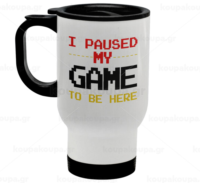 I paused my game to be here, Κούπα ταξιδιού ανοξείδωτη με καπάκι, διπλού τοιχώματος (θερμό) λευκή 450ml