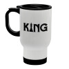 King chess, Κούπα ταξιδιού ανοξείδωτη με καπάκι, διπλού τοιχώματος (θερμό) λευκή 450ml