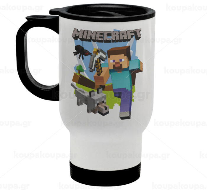 Minecraft Alex, Κούπα ταξιδιού ανοξείδωτη με καπάκι, διπλού τοιχώματος (θερμό) λευκή 450ml