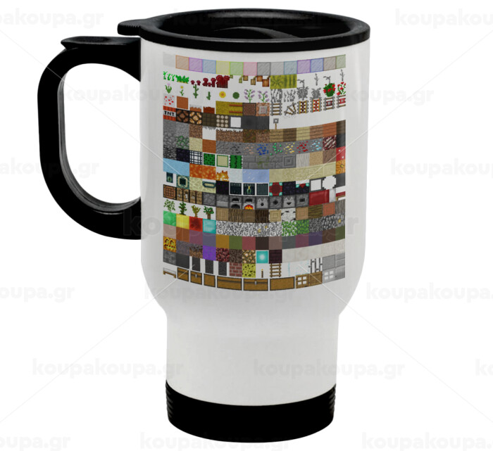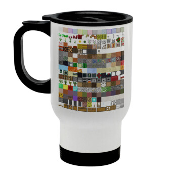 Minecraft blocks, Κούπα ταξιδιού ανοξείδωτη με καπάκι, διπλού τοιχώματος (θερμό) λευκή 450ml