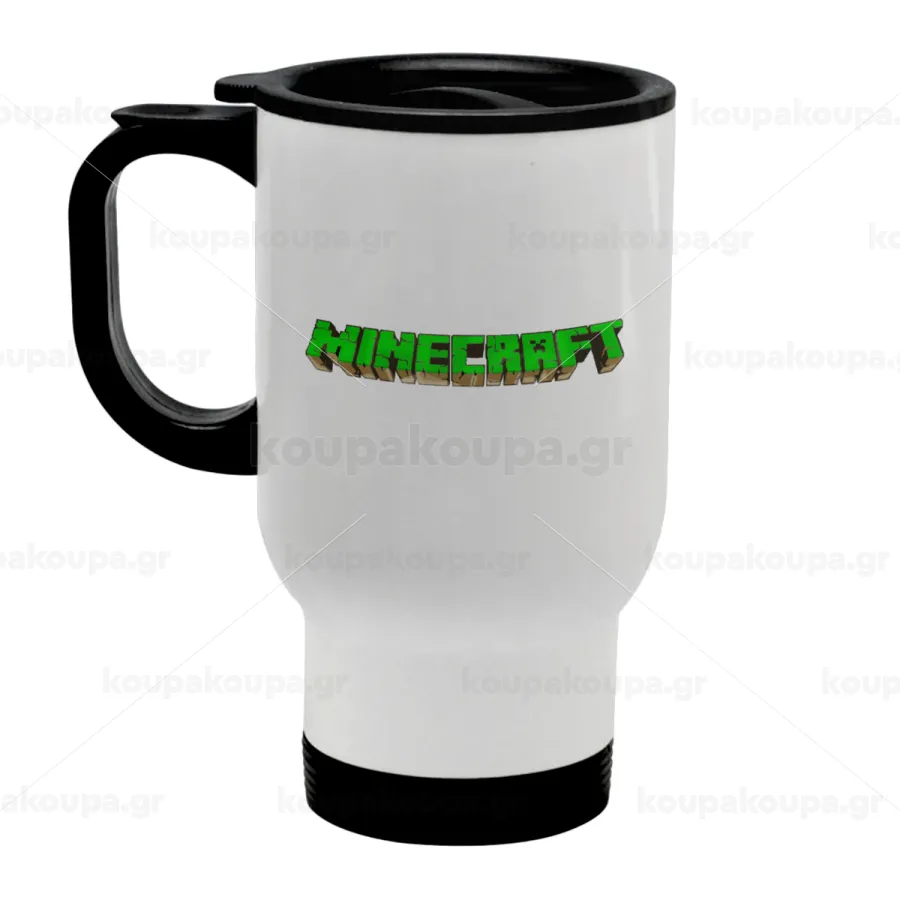 Minecraft logo green, Κούπα ταξιδιού ανοξείδωτη με καπάκι, διπλού τοιχώματος (θερμό) λευκή 450ml