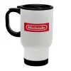 Nintendo, Κούπα ταξιδιού ανοξείδωτη με καπάκι, διπλού τοιχώματος (θερμό) λευκή 450ml