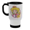 Princess Peach, Κούπα ταξιδιού ανοξείδωτη με καπάκι, διπλού τοιχώματος (θερμό) λευκή 450ml