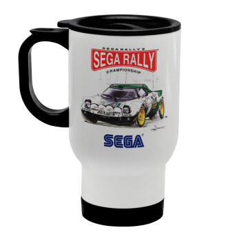 SEGA RALLY 2, Κούπα ταξιδιού ανοξείδωτη με καπάκι, διπλού τοιχώματος (θερμό) λευκή 450ml