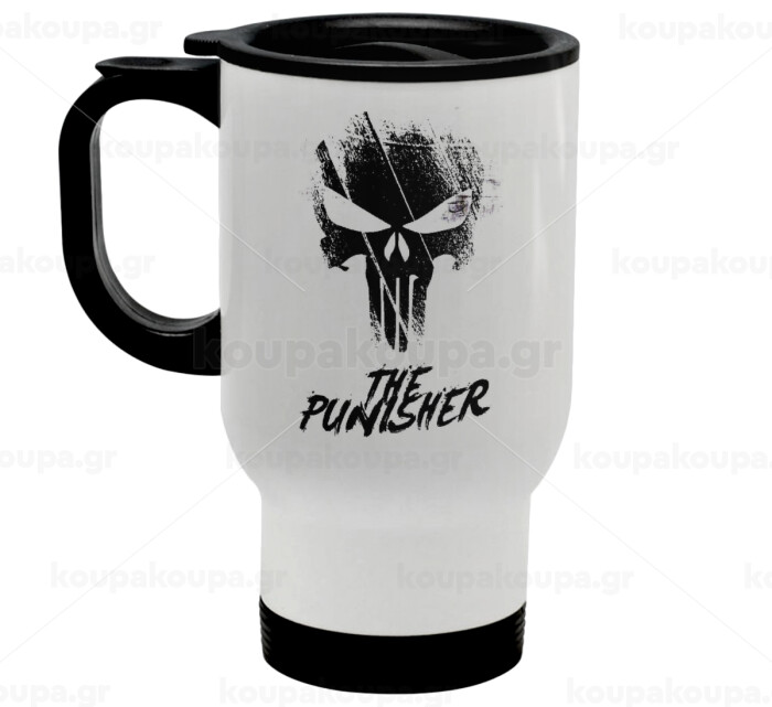 The punisher, Κούπα ταξιδιού ανοξείδωτη με καπάκι, διπλού τοιχώματος (θερμό) λευκή 450ml
