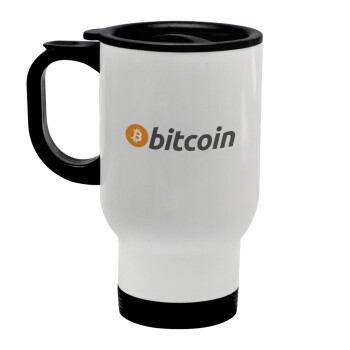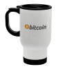 Bitcoin Crypto, Κούπα ταξιδιού ανοξείδωτη με καπάκι, διπλού τοιχώματος (θερμό) λευκή 450ml