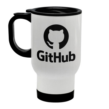 GitHub, Κούπα ταξιδιού ανοξείδωτη με καπάκι, διπλού τοιχώματος (θερμό) λευκή 450ml