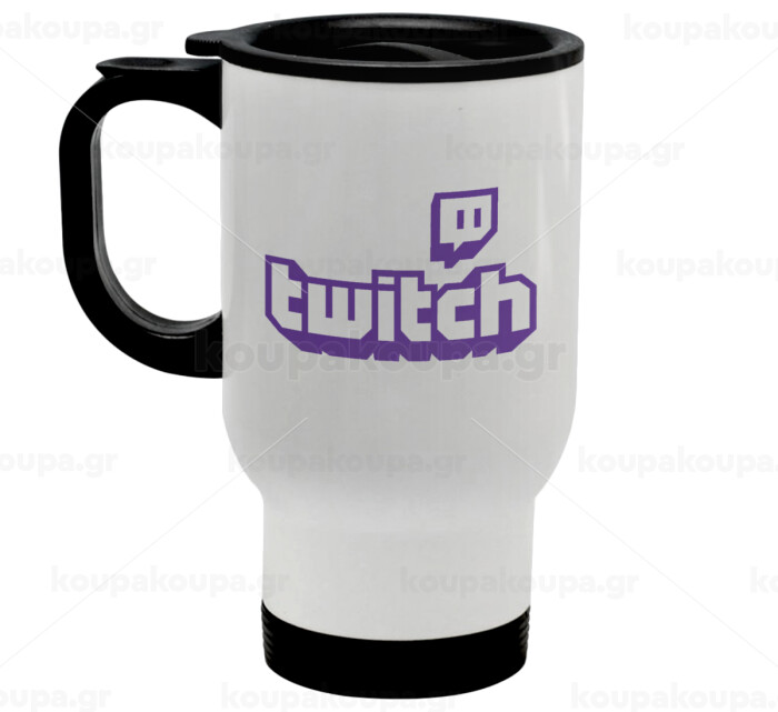 Twitch, Κούπα ταξιδιού ανοξείδωτη με καπάκι, διπλού τοιχώματος (θερμό) λευκή 450ml