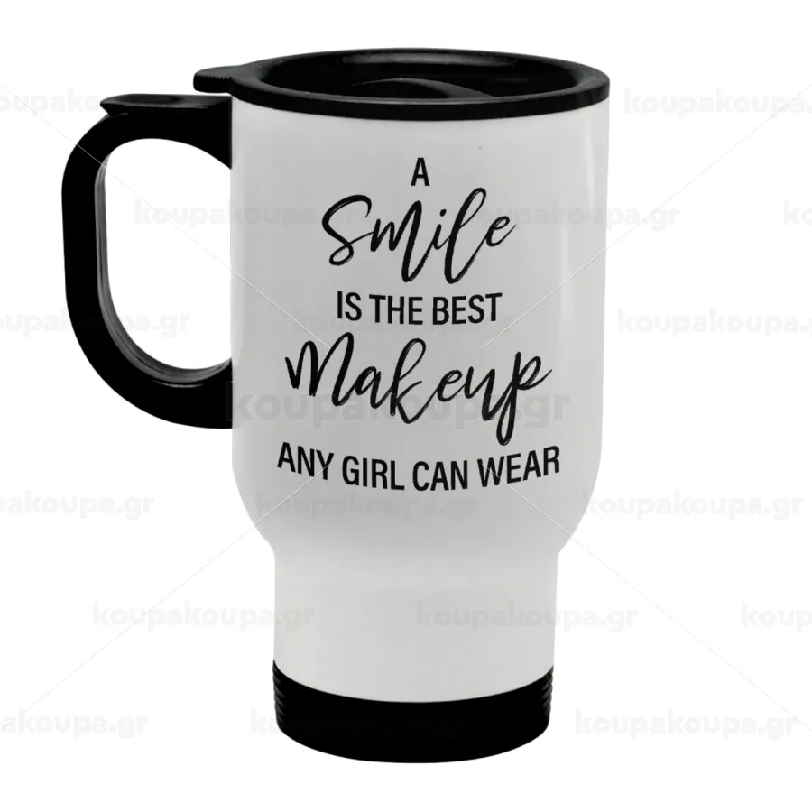A slime is the best makeup any girl can wear, Κούπα ταξιδιού ανοξείδωτη με καπάκι, διπλού τοιχώματος (θερμό) λευκή 450ml
