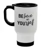 Believe in your self, Κούπα ταξιδιού ανοξείδωτη με καπάκι, διπλού τοιχώματος (θερμό) λευκή 450ml