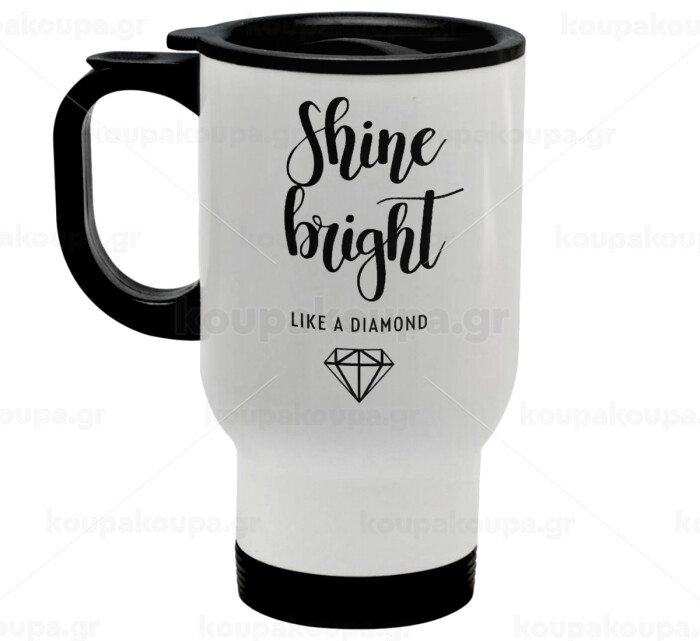 Bright, Shine like a Diamond, Κούπα ταξιδιού ανοξείδωτη με καπάκι, διπλού τοιχώματος (θερμό) λευκή 450ml