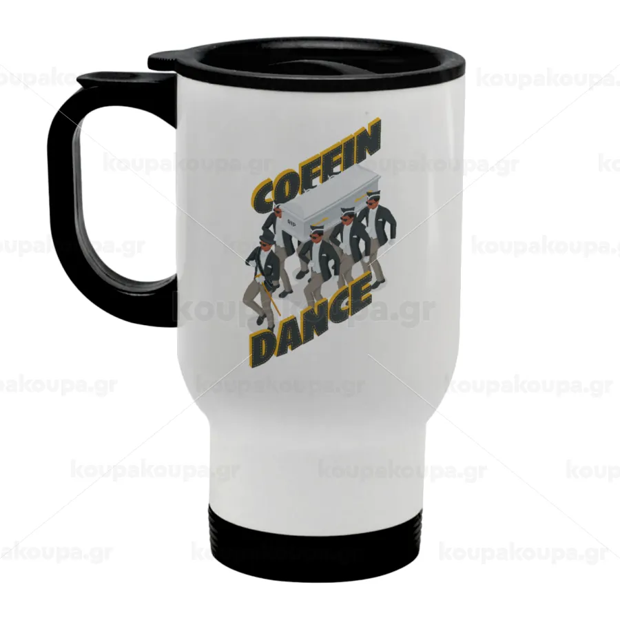 Coffin Dance!, Κούπα ταξιδιού ανοξείδωτη με καπάκι, διπλού τοιχώματος (θερμό) λευκή 450ml