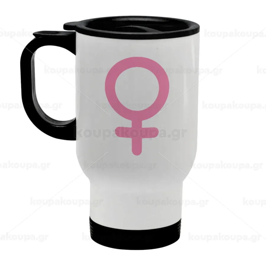 FEMALE, Κούπα ταξιδιού ανοξείδωτη με καπάκι, διπλού τοιχώματος (θερμό) λευκή 450ml