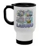 Labubu, Κούπα ταξιδιού ανοξείδωτη με καπάκι, διπλού τοιχώματος (θερμό) λευκή 450ml