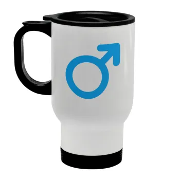 MALE, Κούπα ταξιδιού ανοξείδωτη με καπάκι, διπλού τοιχώματος (θερμό) λευκή 450ml