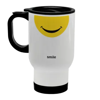 Smile Mug, Κούπα ταξιδιού ανοξείδωτη με καπάκι, διπλού τοιχώματος (θερμό) λευκή 450ml