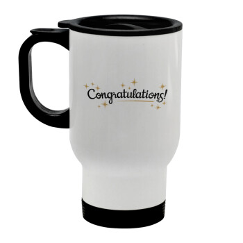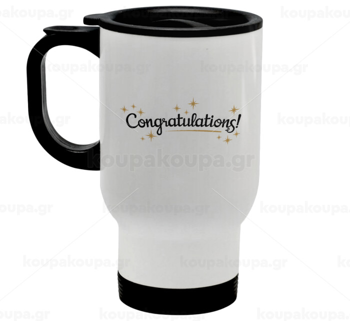 Congratulations, Κούπα ταξιδιού ανοξείδωτη με καπάκι, διπλού τοιχώματος (θερμό) λευκή 450ml