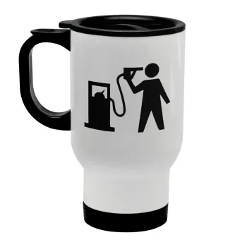 Fuel crisis, Κούπα ταξιδιού ανοξείδωτη με καπάκι, διπλού τοιχώματος (θερμό) λευκή 450ml