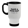 Have a nice day somewhere else, Κούπα ταξιδιού ανοξείδωτη με καπάκι, διπλού τοιχώματος (θερμό) λευκή 450ml