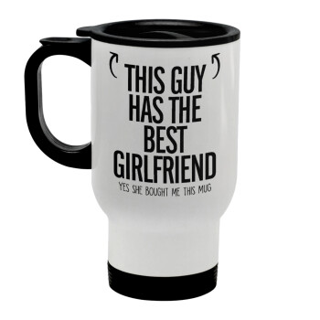 This guy has the best Girlfriend, Κούπα ταξιδιού ανοξείδωτη με καπάκι, διπλού τοιχώματος (θερμό) λευκή 450ml
